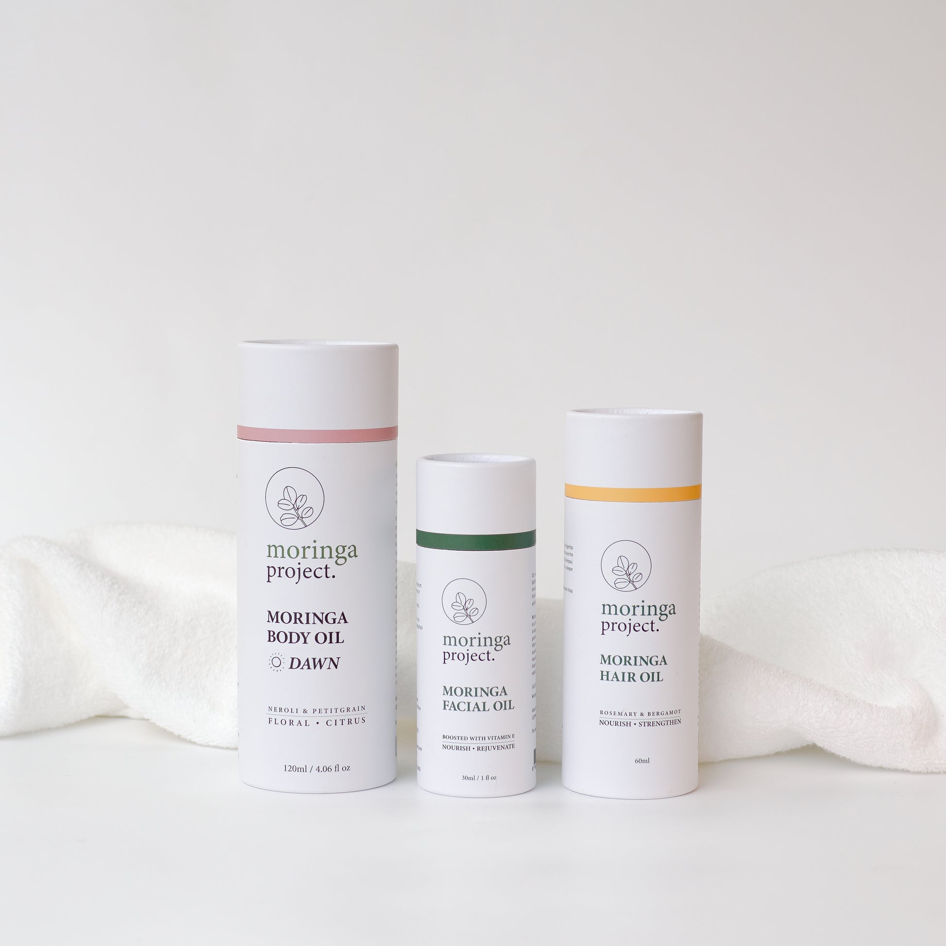 The Head-to-Toe Bundle is your all-in-one routine for deeply nourished skin and revitalised hair. Powered by cold-pressed moringa oil—rich in vitamins, omegas, and antioxidants—this trio supports glow, softness, and strength from every angle.