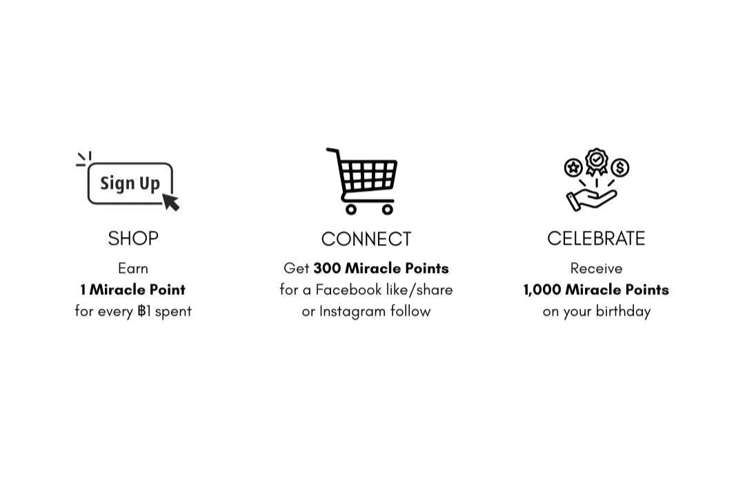 Every ฿1 you spend earns you a miracle point, all you have to do is join.