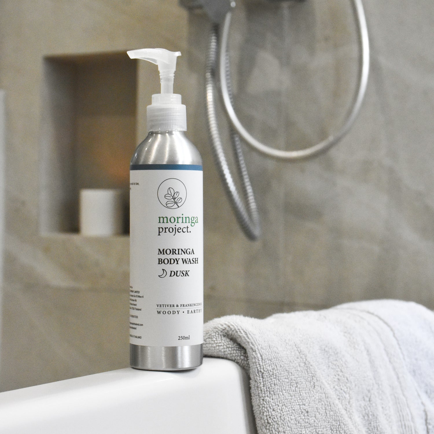 Your skin absorbs more than just water in the shower—it takes in the day, the night, the rhythm of your routine. Our body wash is designed for both the rush of morning and the hush of evening, powered by moringa’s restorative properties and a blend of essential oils that do more than scent the air. Rich in antioxidants, it cleanses without stripping, leaving skin hydrated, soft, and subtly scented.