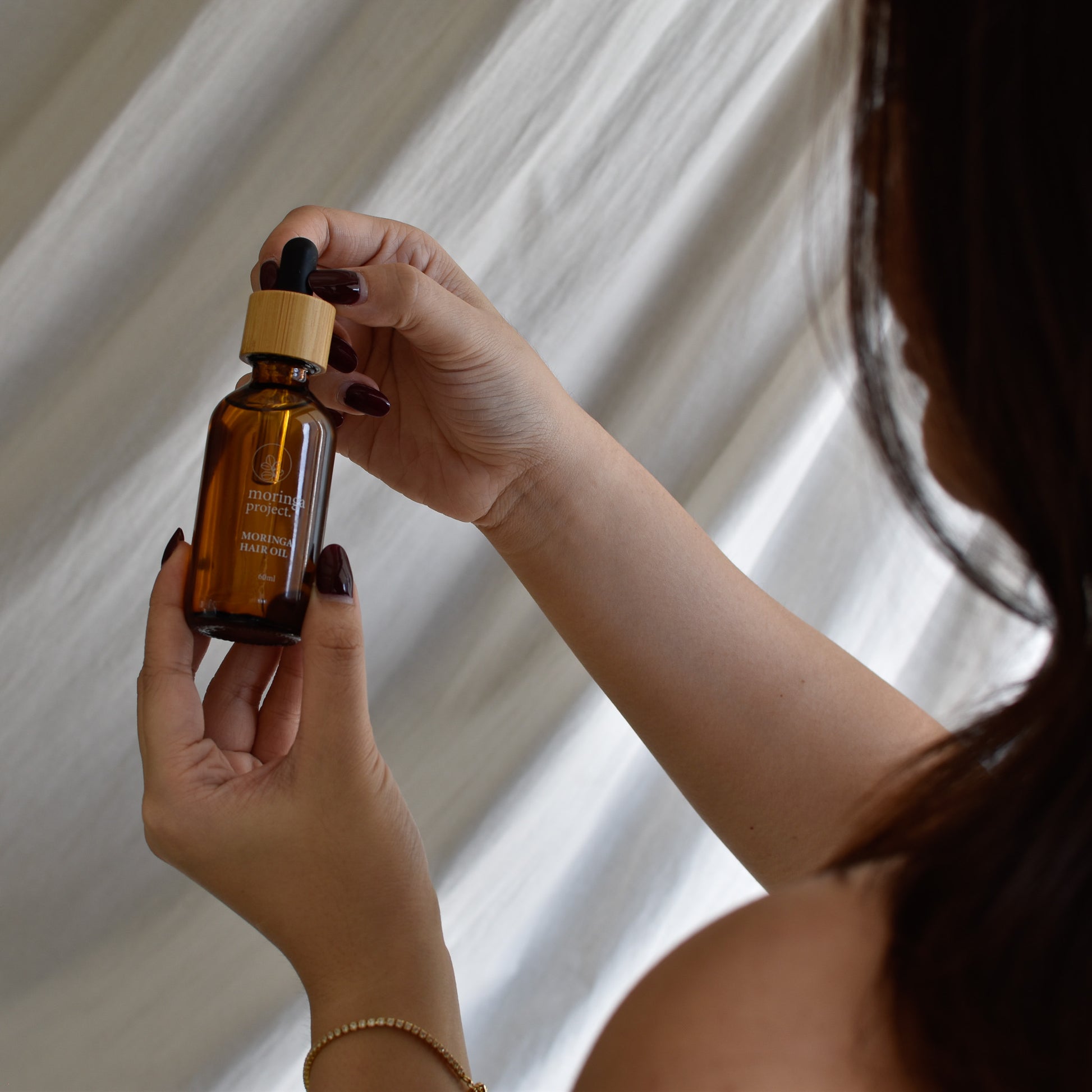 Hair isn’t just hair—it’s history, memory, and movement. And it deserves devotion. Our hair oil is a liquid ritual—a serum infused with moringa oil and extract and a powerhouse of botanical oils designed to repair, strengthen, and transform. Coconut, Olive, Grapeseed, Castor, and Sesame sink in deep, drenching each strand in moisture, while active essential oils—Rosemary, Bergamot, Ginger, Lemongrass, and Lavender—wake up the scalp, fight hair loss, and keep everything in balance. Shine, softness, and strength—without the weight, without the fuss.
